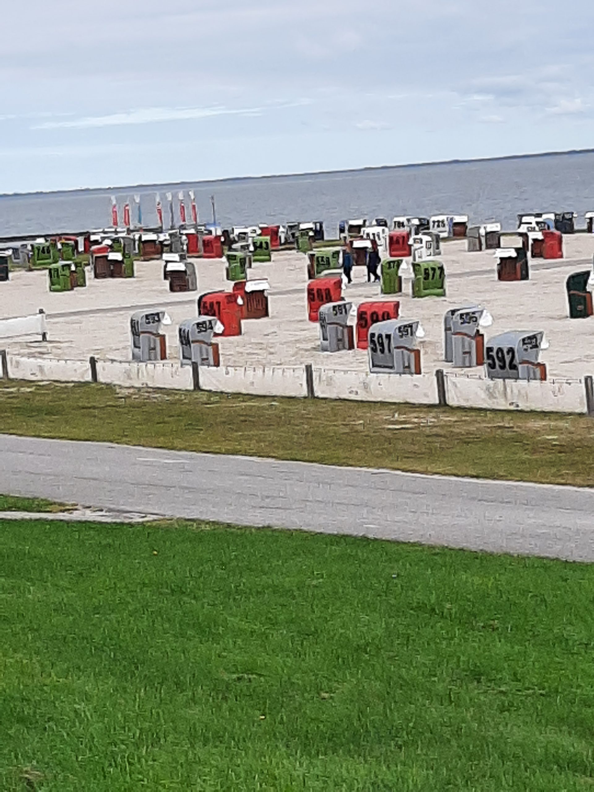 In Neuharlingersiel gibt es einen breiten Sandstrand. Wir hatten zwar nachmittags immer Flut, aber der Zugang zum Wasser war beschwerlich und zum Schwimmen hätte man weit ins Watt gehen müssen. Wir haben verzichtet. Der Ort verfügt aber über das „BadeWerk“ mit einem Meerwasserhallenbad und sonstigen Wellnesseinrichtungen, z. B. Thalasso. Der Begriff stammt aus dem Altgriechischen und bedeutet „Meertherapie“, also Anwendungen mit Algen, Meerwasser oder Schlick o.ä.. Heidi hat sich ein paar Mal diesbezüglich verwöhnen lassen. Neuharlingersiel darf sich auch wegen dieser Einrichtungen Thalasso – Nordseeheilbad nennen.