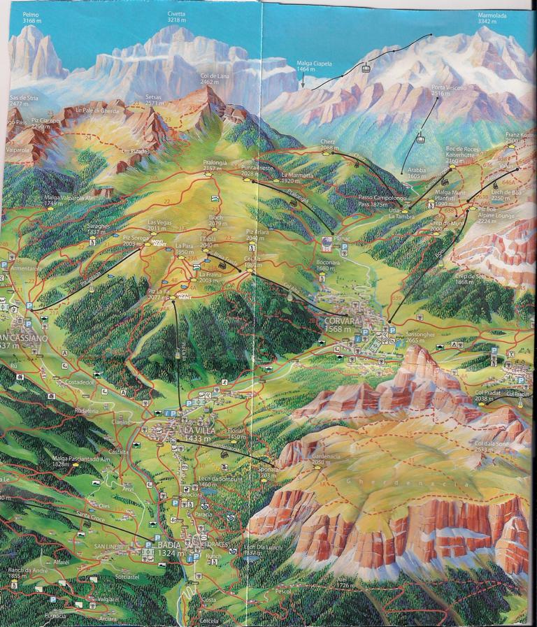 Alta Badia ist dreisprachig. Auch die Hinweisschilder sind deutsch, italienisch und ladinisch. Unser Ausgangspunkt war La Villa (1433 m). Mit der Seilbahn ging es hinauf zum Pic La Ila (2077 m) und in ein wunderschönes Wandergebiet, das durchaus vergleichbar ist mit der Seiser Alm, aber viel kleiner. Man kann diese Region auch von Corvara oder San Cassiano bequem erreichen. Viele Restaurants (nicht  Jausenstationen, wie man sie in den Bergen erwartet) laden bei gepfefferten Preisen ein. Beispiele: Bratkartoffeln mit Spiegelei 13,80 Euro – 0,1 l Grauburgunder 4,20 Euro. Dennoch waren wir mehrmals hier oben, schon wegen der herrlichen Ausblicke auf die umliegenden Berggipfel, nun aus einer anderen Perspektive.